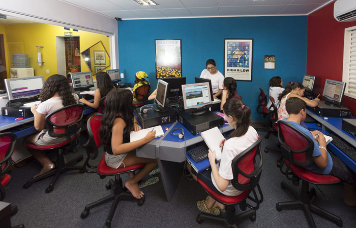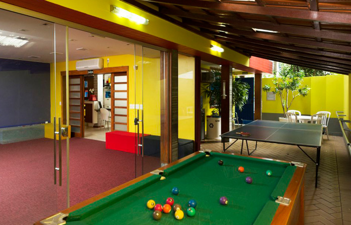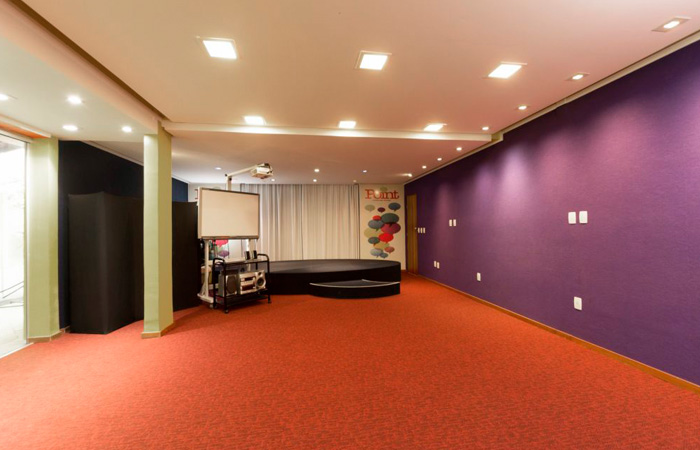 E a estrutura do POINT contribui para isso, com salas equipadas com quadros digitais interativos, área de recreação com pingue-pongue, totó, piscina, cozinha e um amplo auditório.